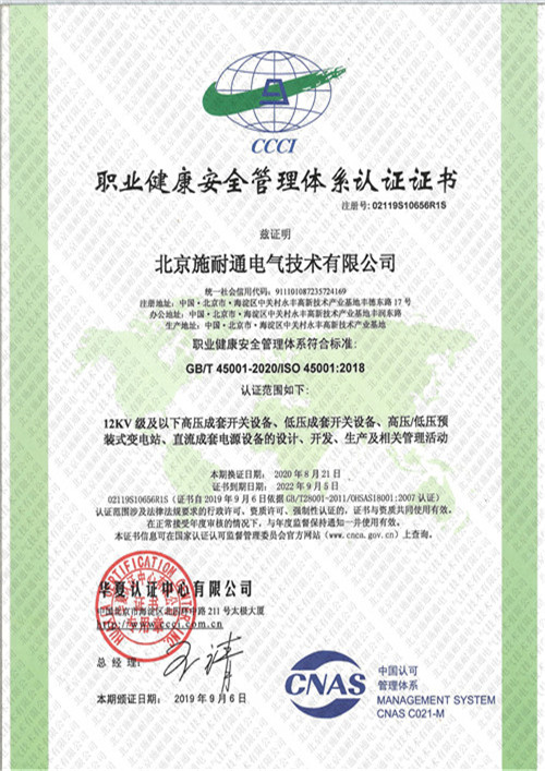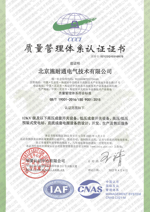 公司先后通过QMS GB/T 19001-2016/ISO 9001:2015质量管理体系;EMS ISO 9001:2015 、GB/T 24001-2016/ISO 14001:2015环境管理体系;OHSMS GB/T 45001-2020/ISO 45001:2018职业健康安全管理体系等认证,建立健全了设计开发、生产制造、产品检验和售后服务等各环节完善的质量管理保证体系。本公司的质量方针是:在任何时间和场合都将向顾客提供周密设计和精心制作的产品,履行自己的全部承诺,争创和保持卓越的“施耐通电气”品牌,并通过不断改进、创新和追求,使产品质量水平处在国内电气行业的前列。