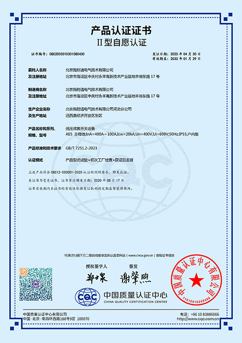 AES 主母线:InA=1600A-400A低压成套开关设备