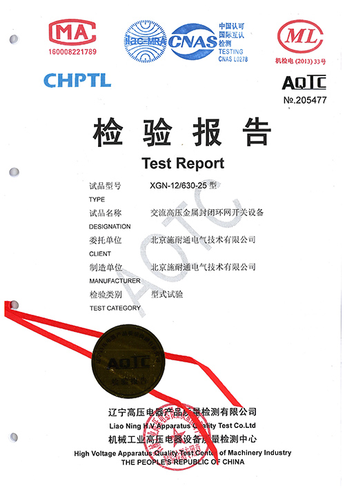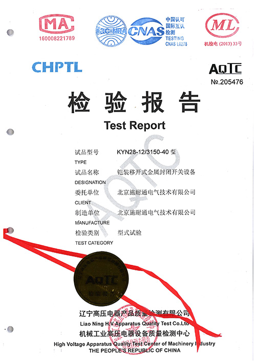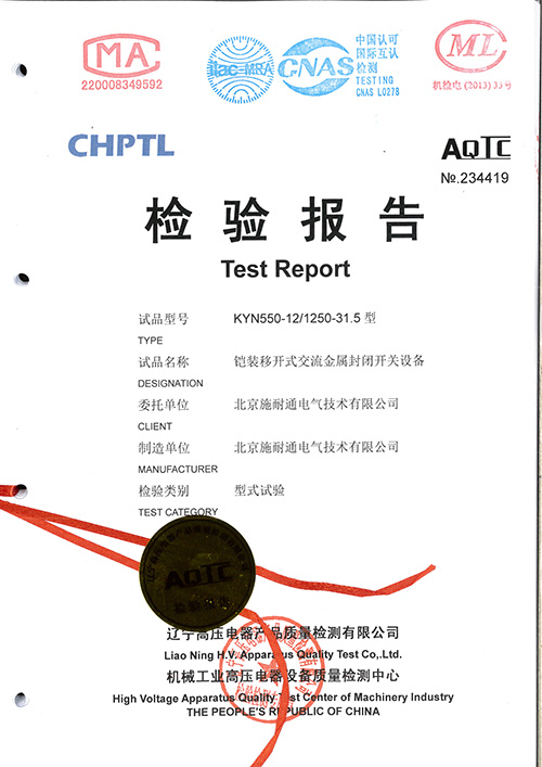 KYN550-12/1250-31.5 型铠装移开式交流金属封闭开关设备检验报告